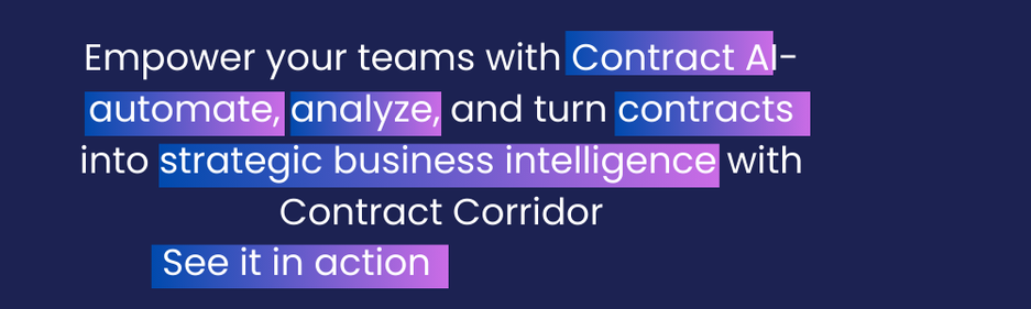 Unlock the power of Contract AI for your business. See how Contract Corridor combines AI-driven review, automation, and analytics to streamline contracting, reduce risk, and provide real-time insights. Schedule a Demo