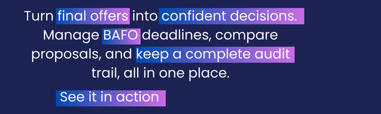Without proper tracking, organisations risk missed deadlines, inconsistent evaluations, and limited auditability. When the BAFO process is supported by a centralized contract management approach, teams gain the confidence to compare proposals fairly, protect value, and move forward faster.