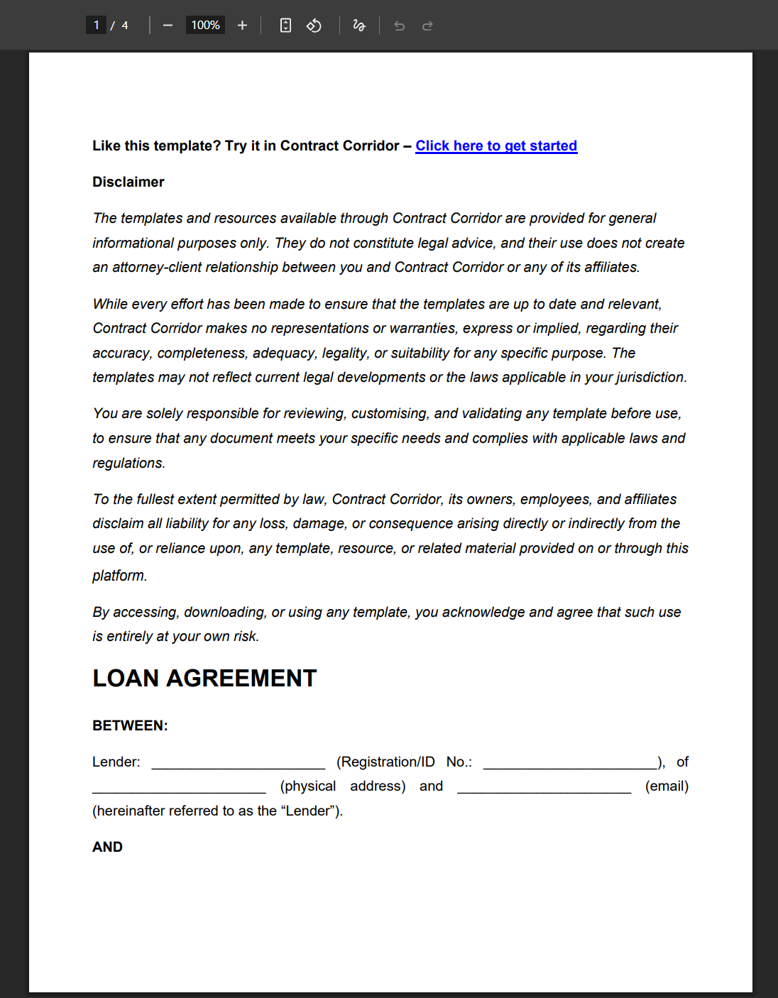 To the fullest extent permitted by law, Contract Corridor, its owners, employees, and affiliates disclaim all liability for any loss, damage, or consequence arising directly or indirectly from the use of, or reliance upon, any template, resource, or related material provided on or through this platform.
