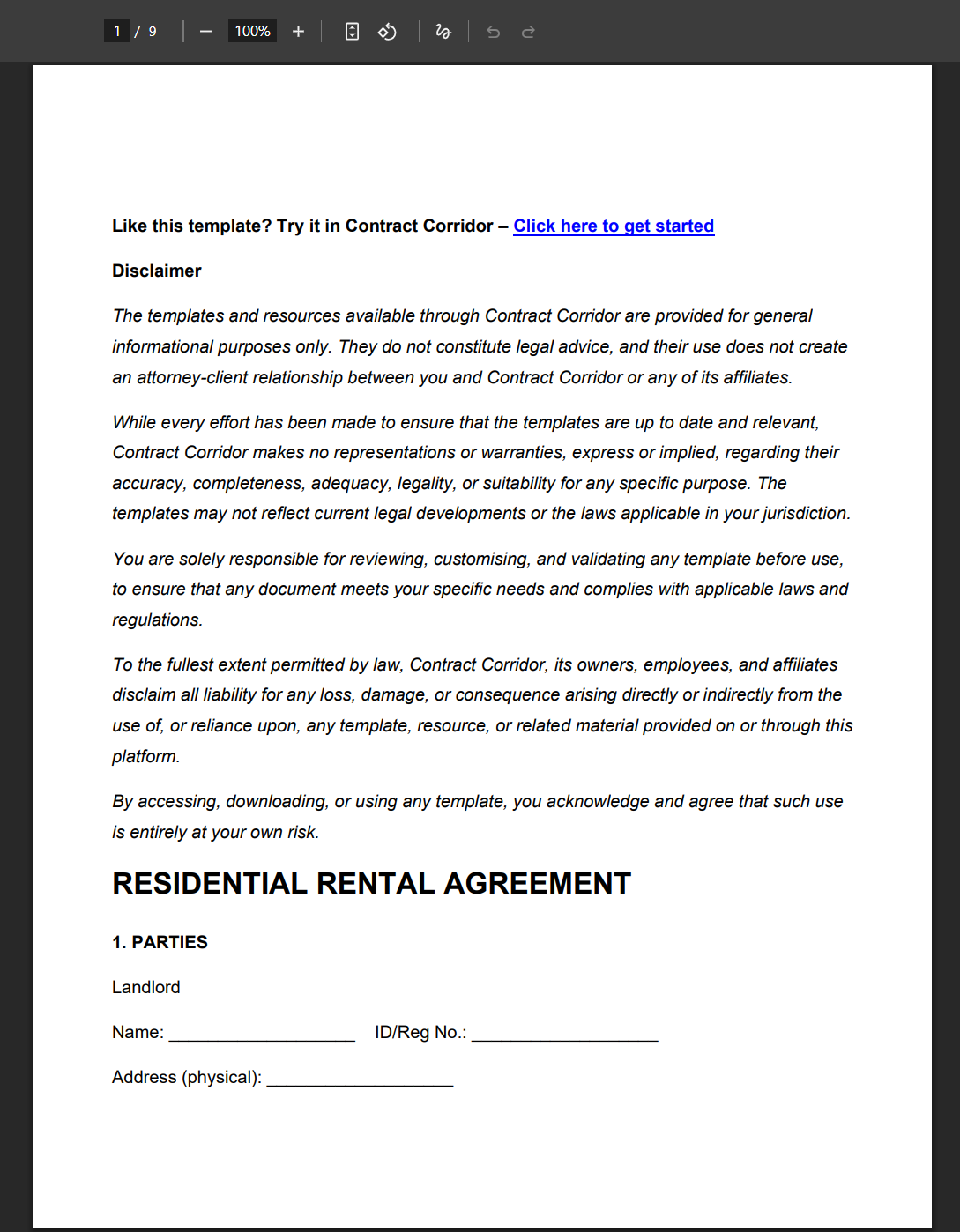 To the fullest extent permitted by law, Contract Corridor, its owners, employees, and affiliates disclaim all liability for any loss, damage, or consequence arising directly or indirectly from the use of, or reliance upon, any template, resource, or related material provided on or through this platform.