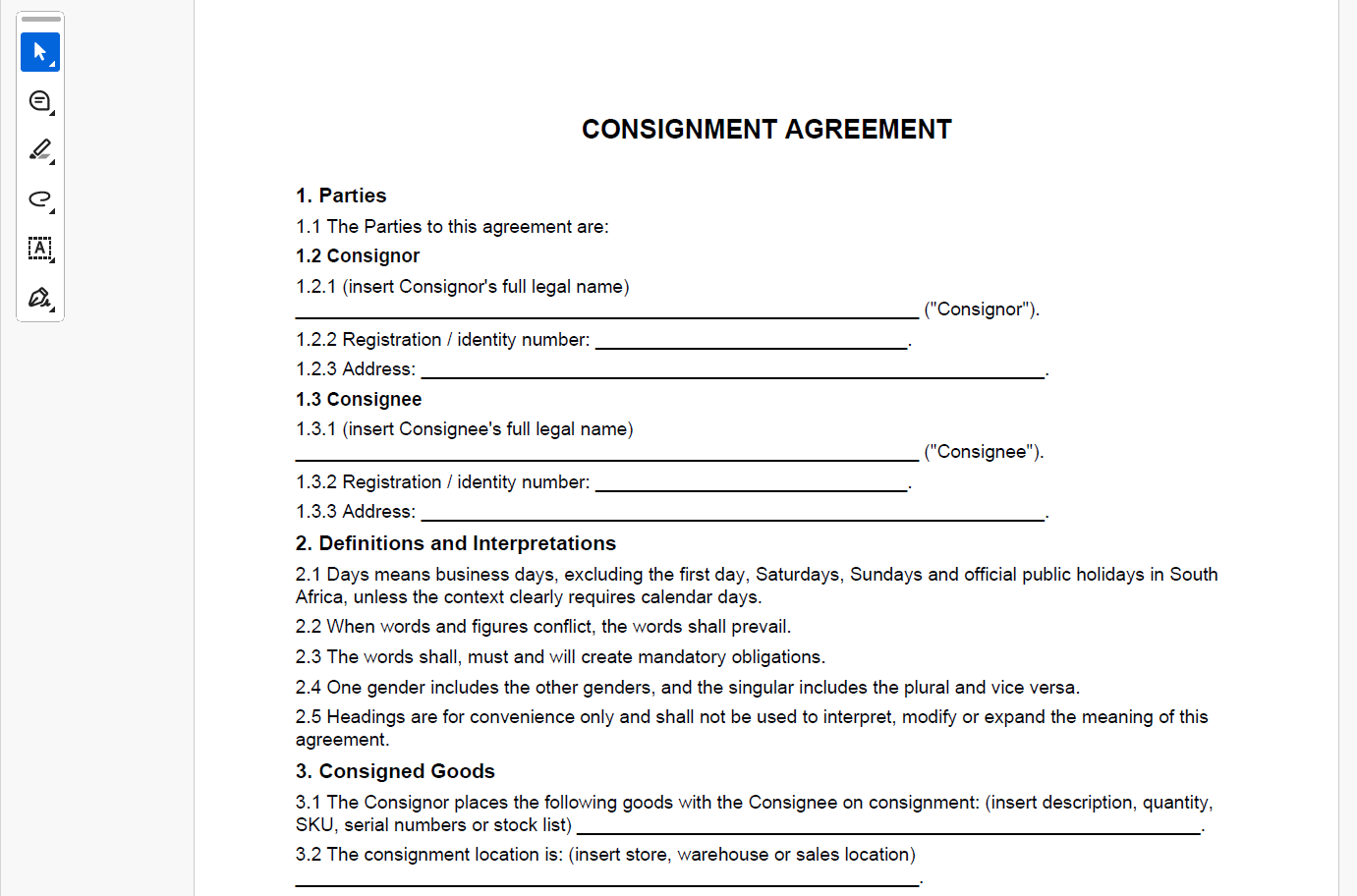 To build a strong document, you must include several specific sections. You can start with a simple consignment agreement template and customize it for your needs.